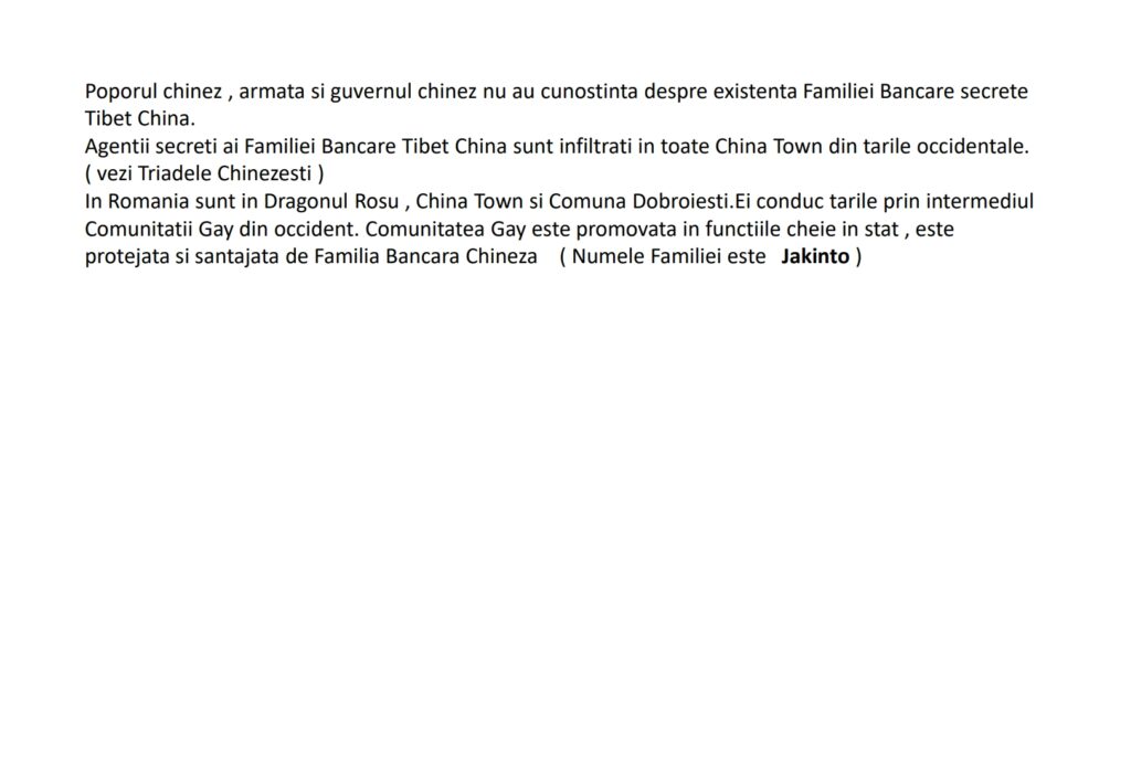 Daca o instanta de judecata da dispozitie sa se studieze de catre specialisti in decriptare modul de comunicare secreta a triadelor chinezesti, atunci se pot citi si publica informatiile secrete ale Familiei Bursiere Tibetane.